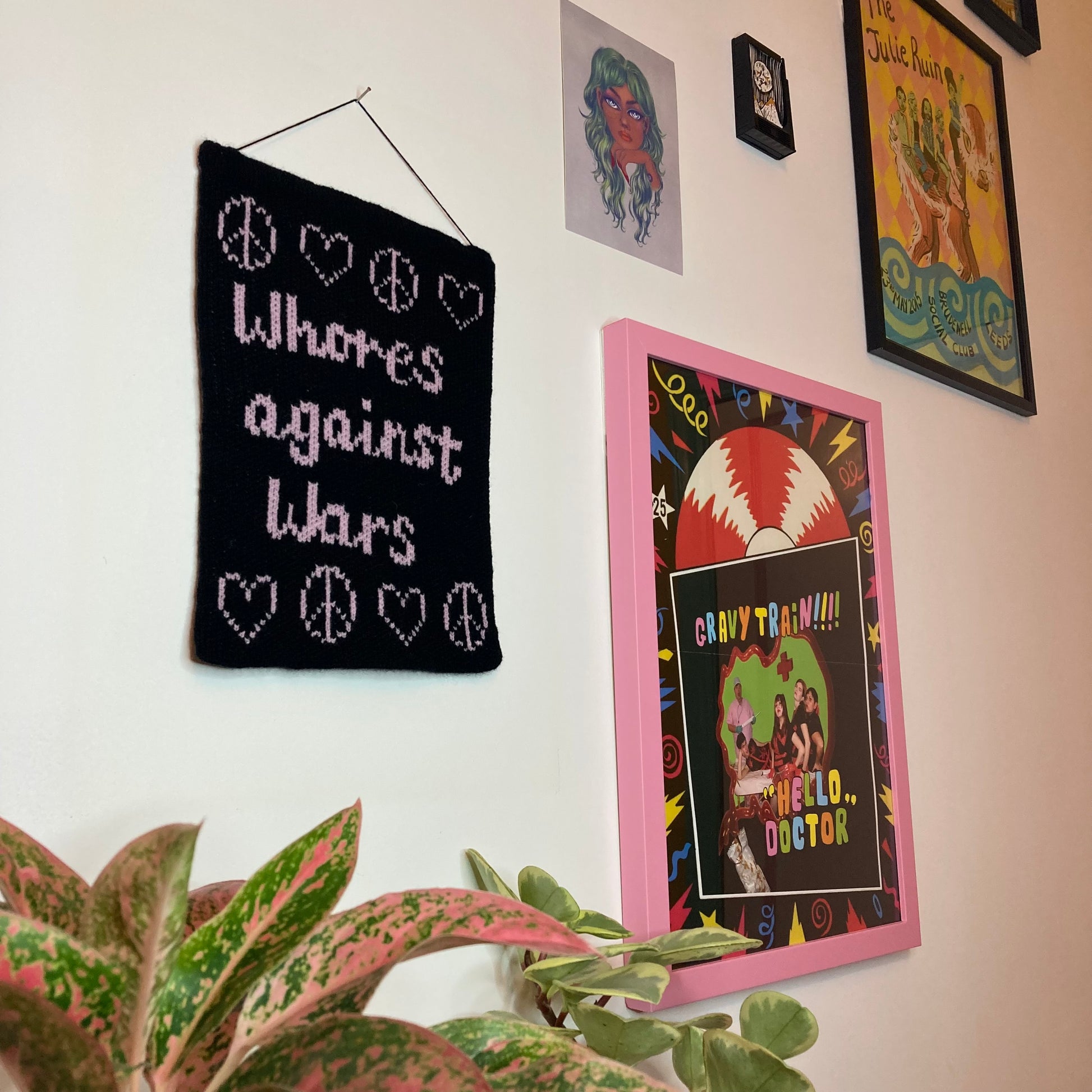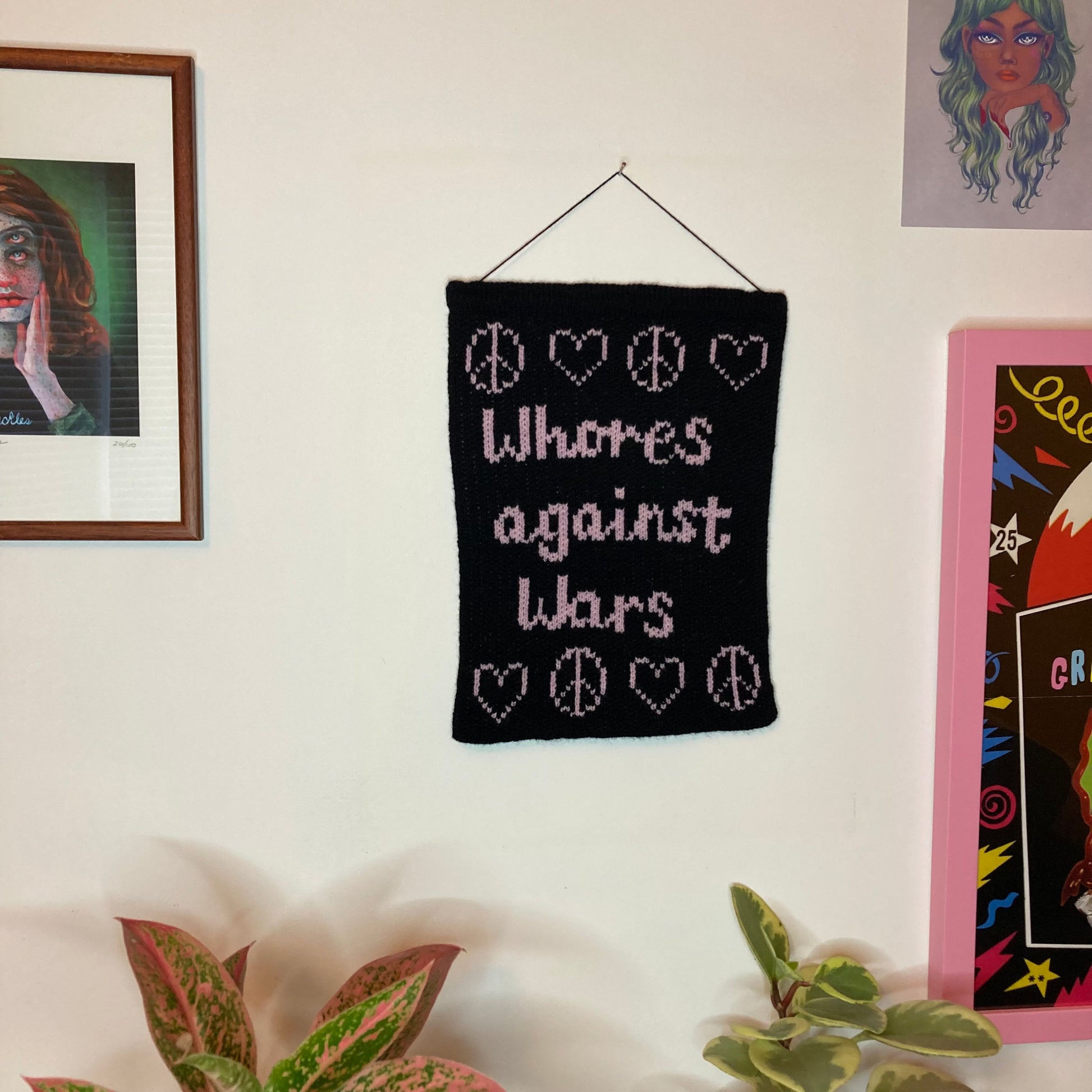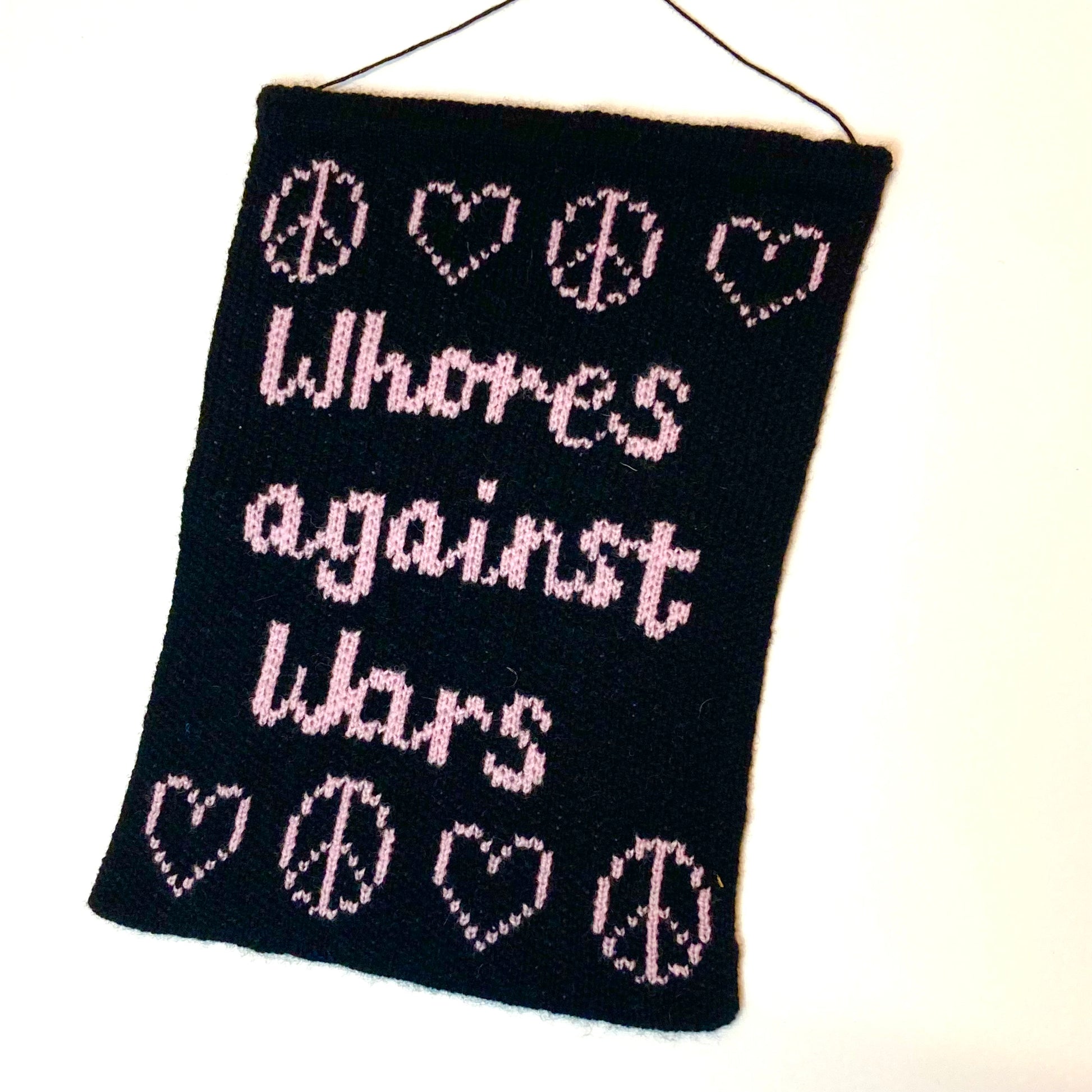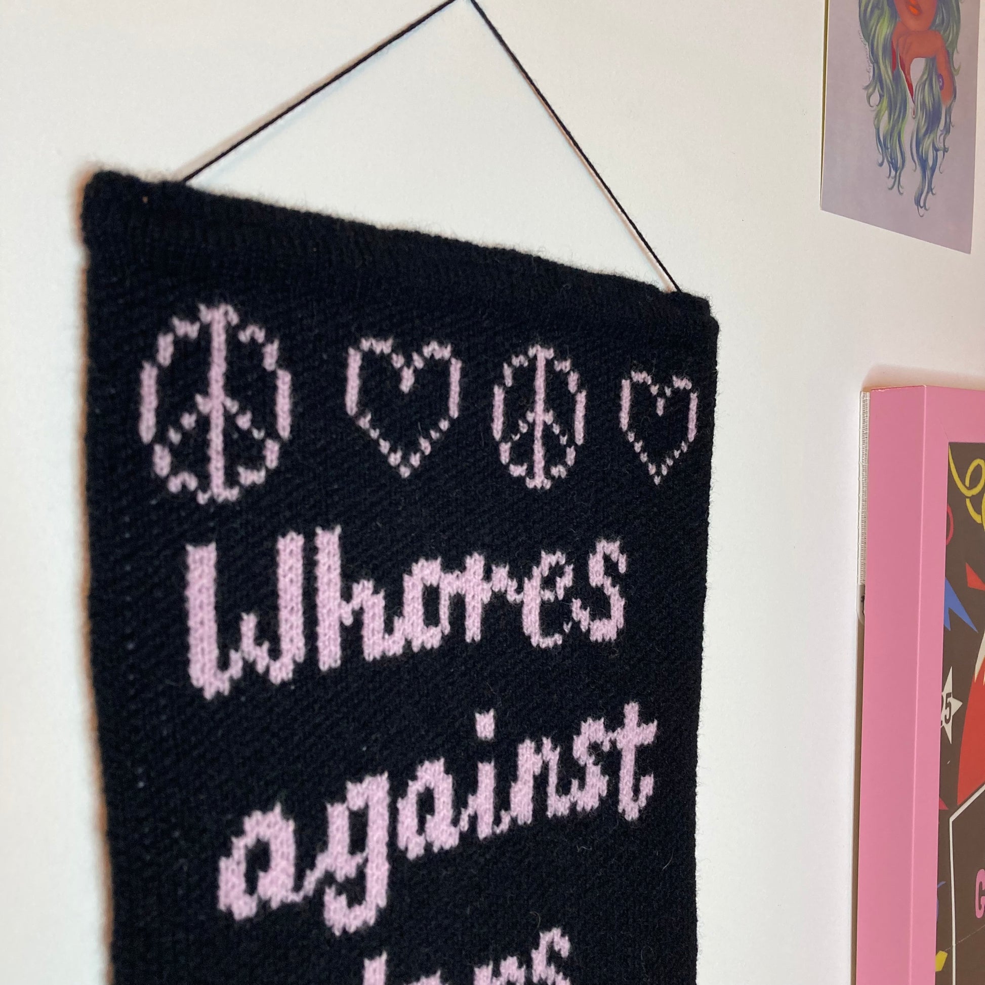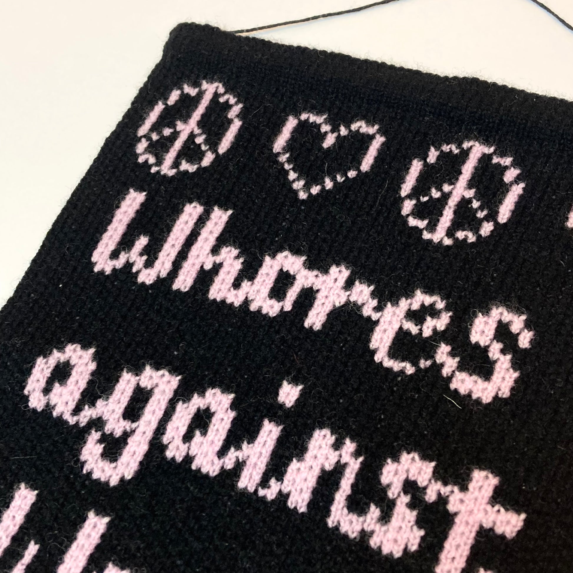 This knitted banner is a recreation of the slogan used by E.C.P (English Collective of Prostitutes). Found in the badge collection at the feminist library and created as a fundraiser for this organisation, this piece will be a great addition to any home, AND raise money for a fantastic resource.